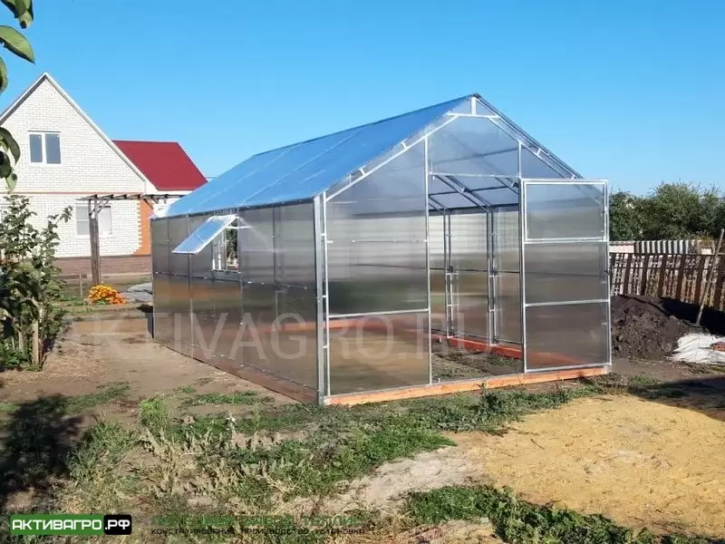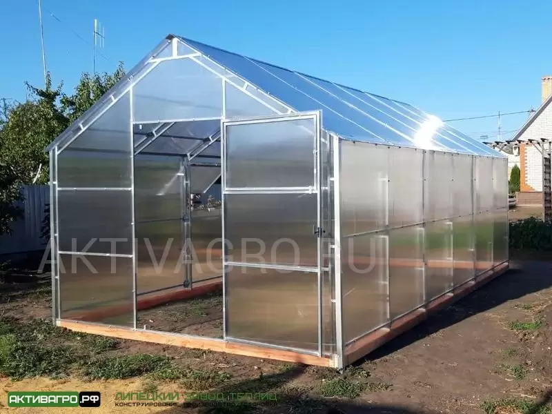 Завод «АКТИВАГРО» производит домики из светопрозрачного поликарбоната с двухскатными крышами. Для сбора урожая в сезон жители разных регионов страны могут купить на сайте со скидкой теплицу «Ударница Англичанка» с сертификатом соответствия. Каркас шириной 2.5/3 м и высотой скатов 2,25 м изготовлен из двойной трубы сечением 20х20 + 20х20 мм с двухсторонней оцинковкой.